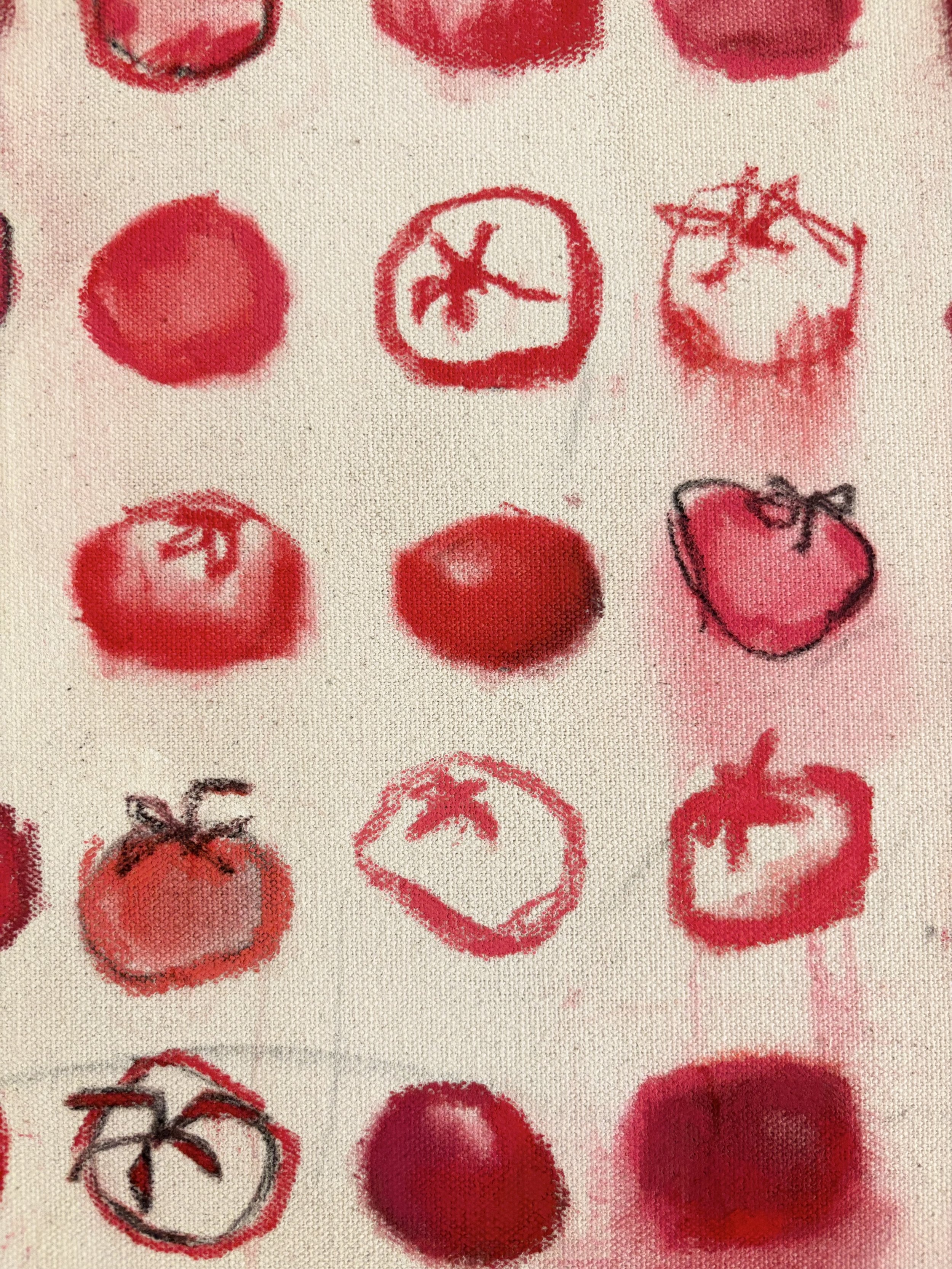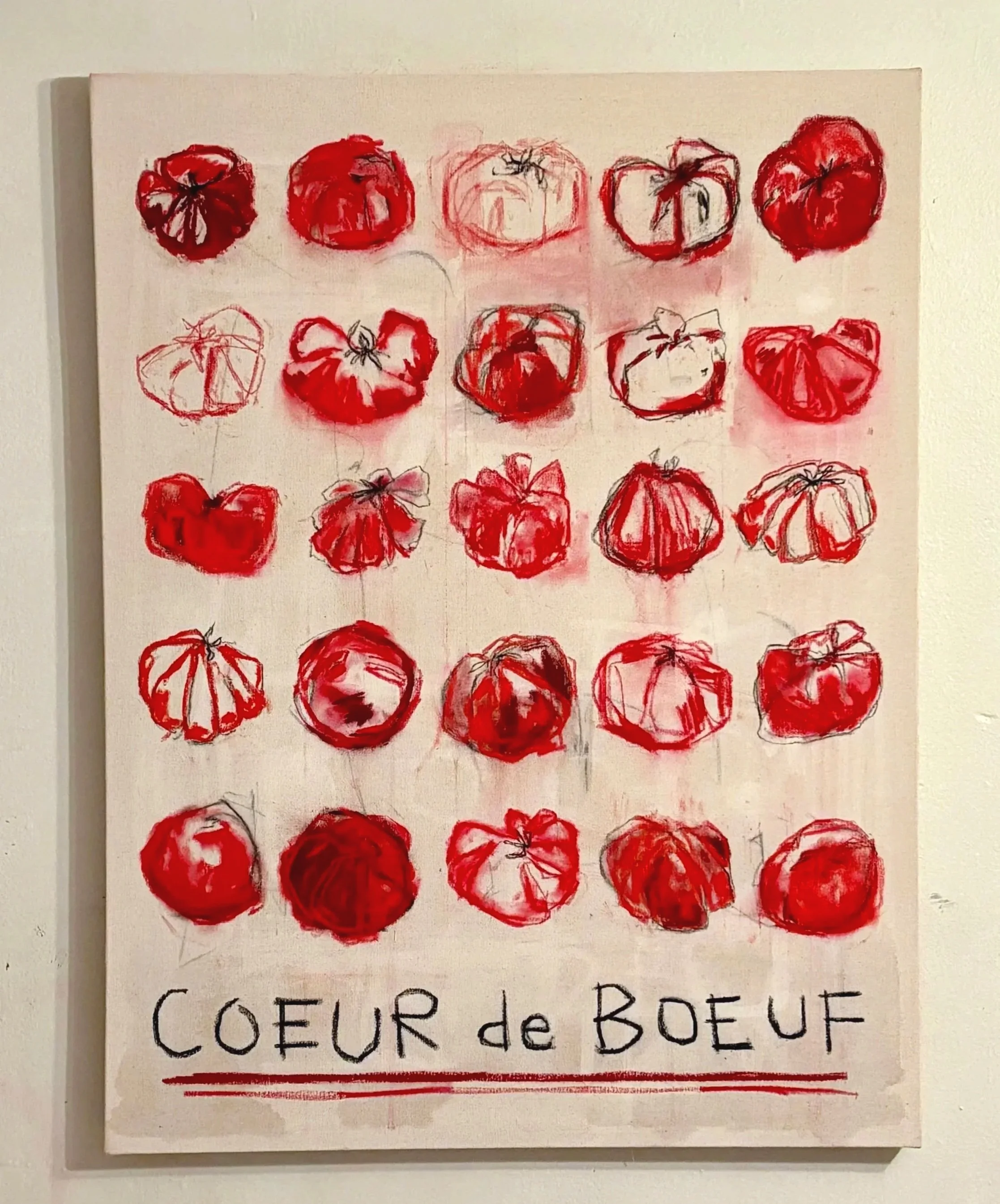 Japan’s sweetheart tomato in art form with the peachy glow of old folk stories.